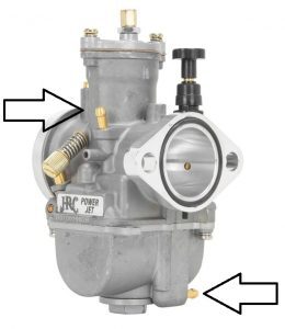 changed easily whilst the carburetor is mounted in place on the bike. Changing the pilot (slow jet) will require unmounting from the engine.