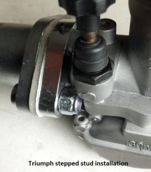 Top picture showing heat insulator and lock nuts on Triumph manifold.