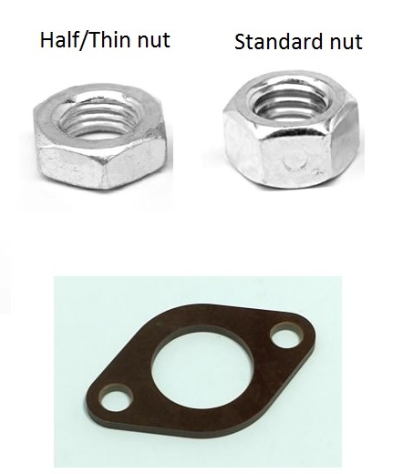 Our 2 inch flanged carbs are supplied with a thin nut in both early and late 5/16 threads.