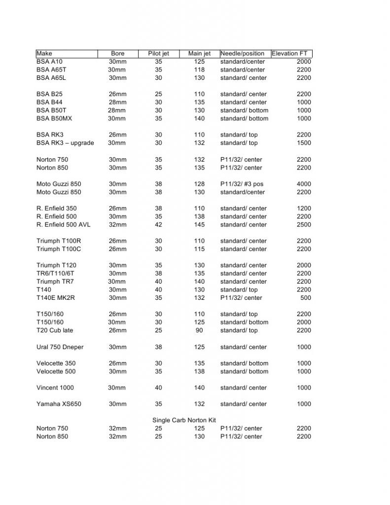 5. Carburetor kits for Norton Commando single 30 or 32mm