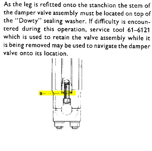 Install inside fork lower leg under damper. Not outside under screw head!