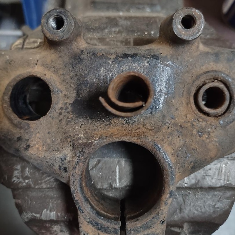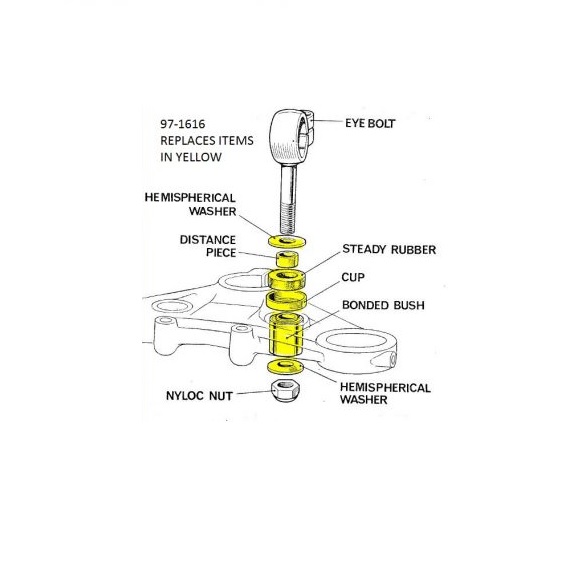 A more universal punch will drive out the steel center tube and often the rubber but leave the outer sleeve in the triple clamp. Or if the bike has sat in the weather the original handle bar mounting rubber bushing 97-1527 may be rotted out entirely. Even with the the correct punch it can be a tedious task. Without the center tube it is nearly impossible to locate the punch correctly. This may require removal of the: top fork nuts, center stem nut, and top triple clamp. Attempting this job with the top clamp on the bike is not advised as you is likely to damage the fuel tank or headlamp bucket.